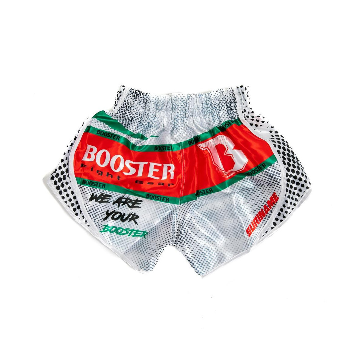 Le short Muay Thai Team Suriname de Booster Fight Gear vous permet d'afficher fièrement les couleurs du Suriname sur le ring. Fabriqué artisanalement en Thaïlande selon les traditions authentiques du Muay Thai, ce short allie performance technique et fierté nationale pour tous vos entraînements et compétitions.