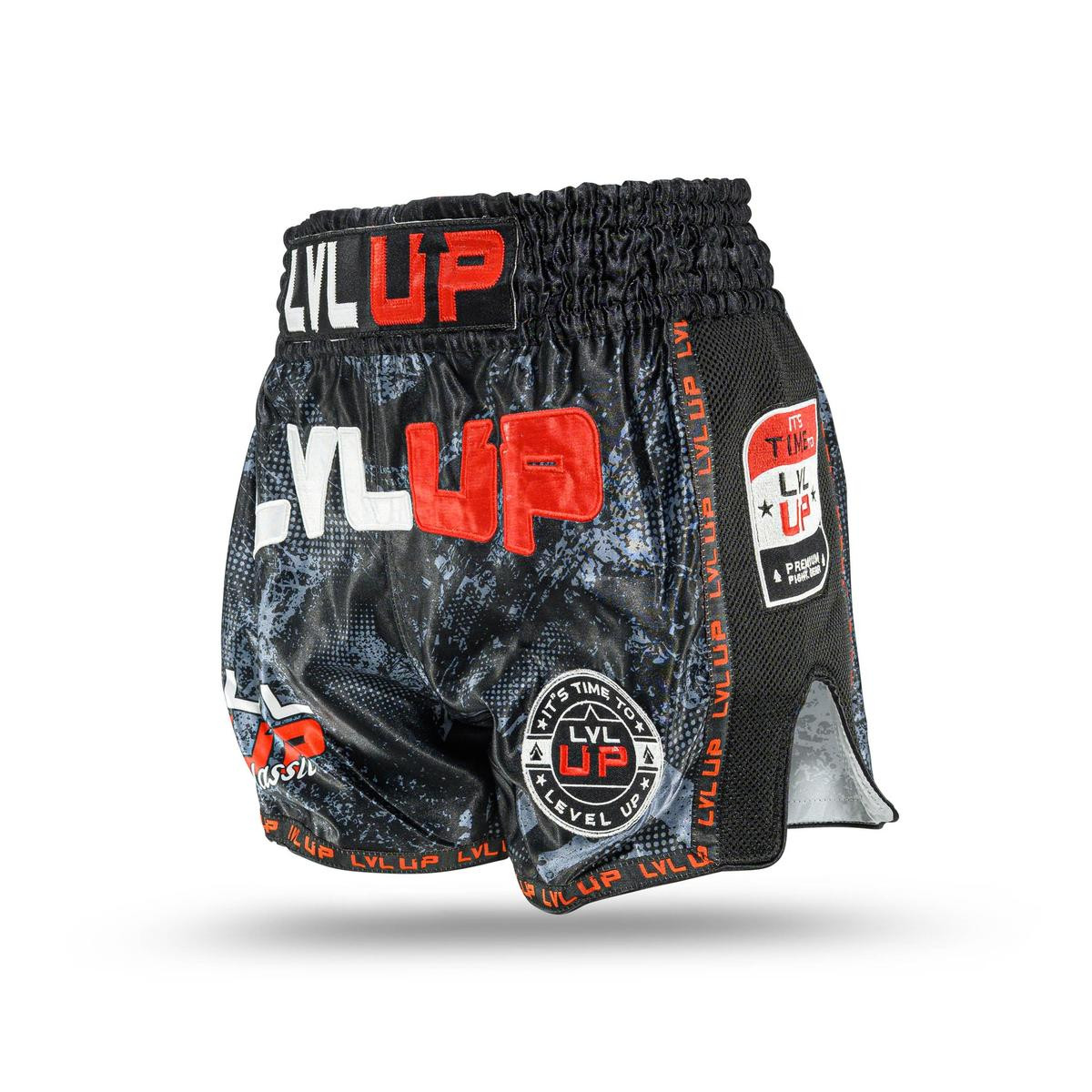 Short Muay Thai LVL UP Black/Grey/White/Red Bold