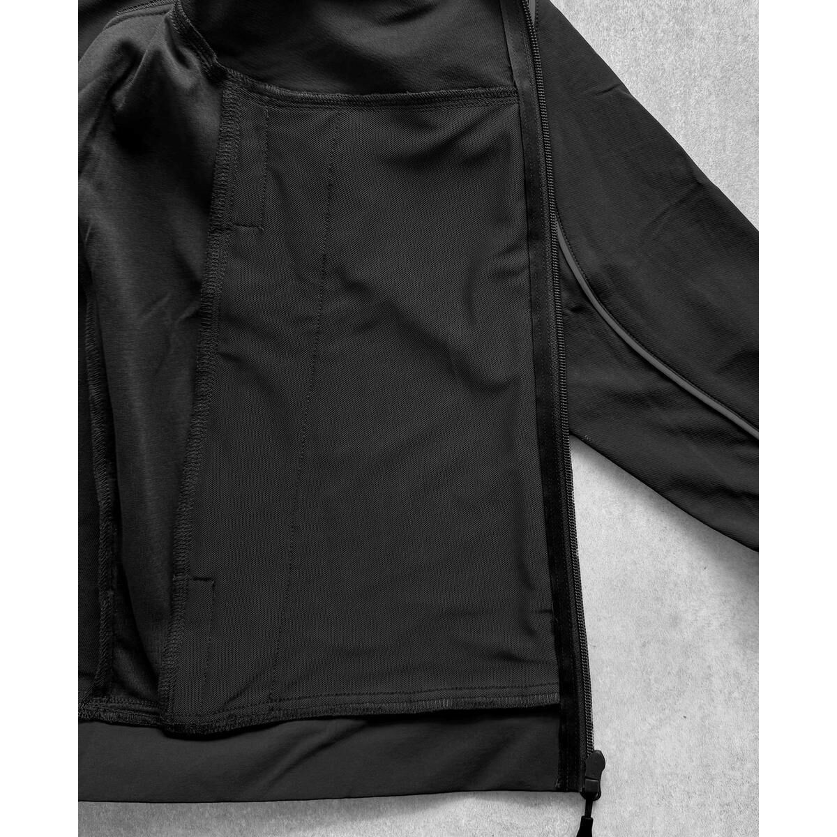- Détails techniques : col montant, poches latérales zippées, taille et poignets élastiques